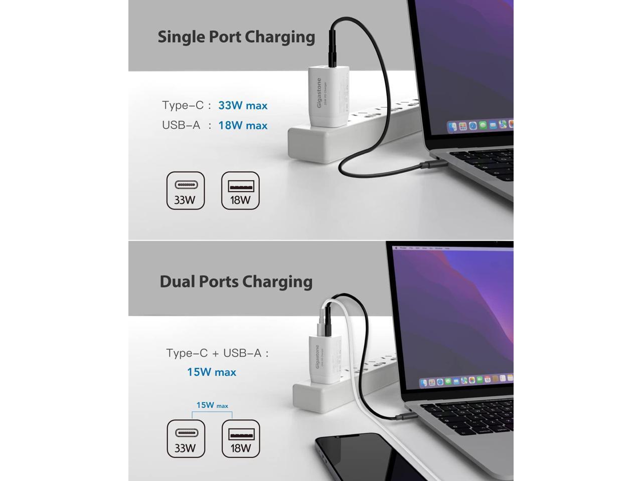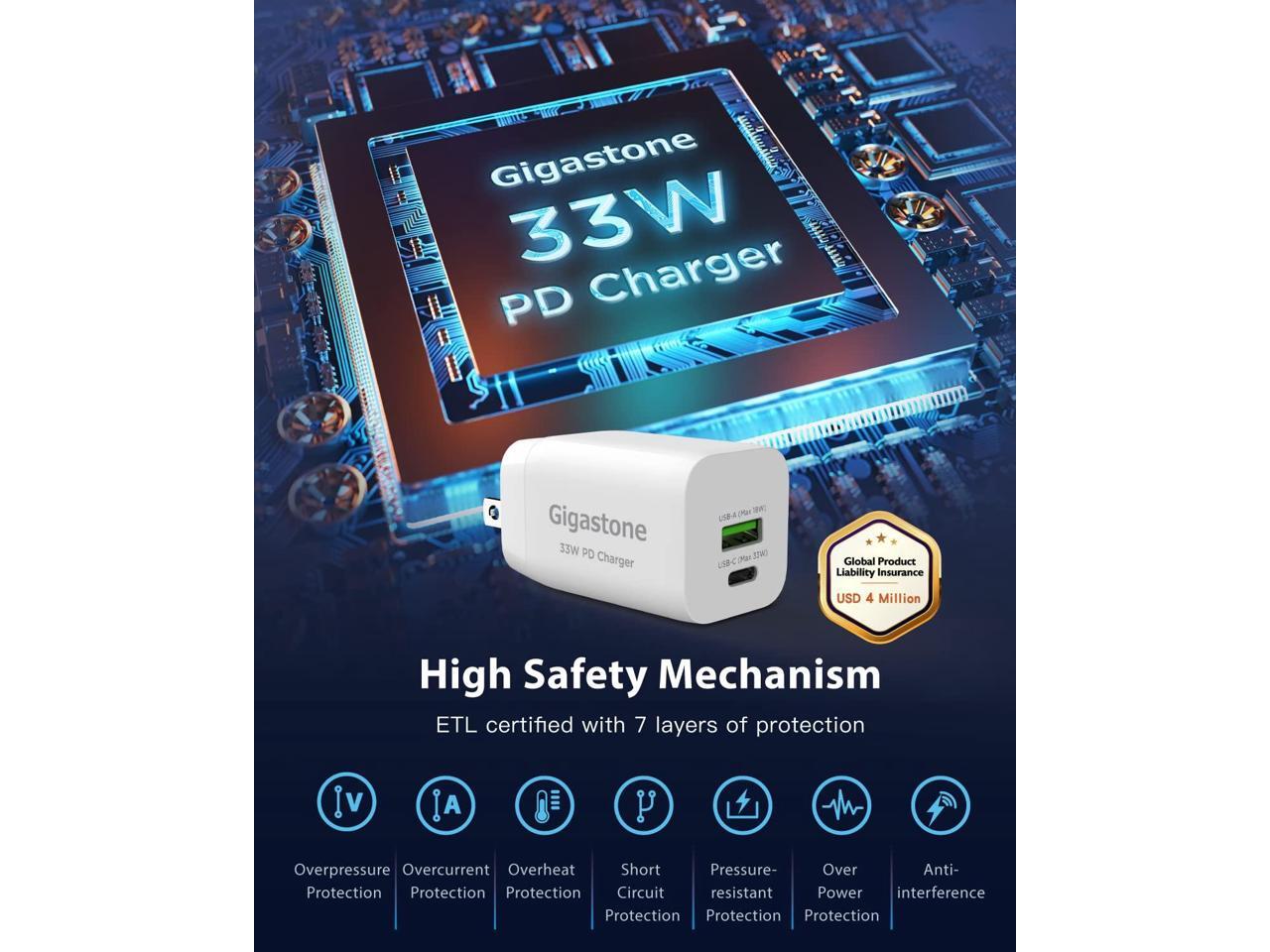 Gigastone 30W USB C Charger Power Go Dual Ports PPS 33W Power Adapter - 4 Pack