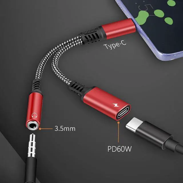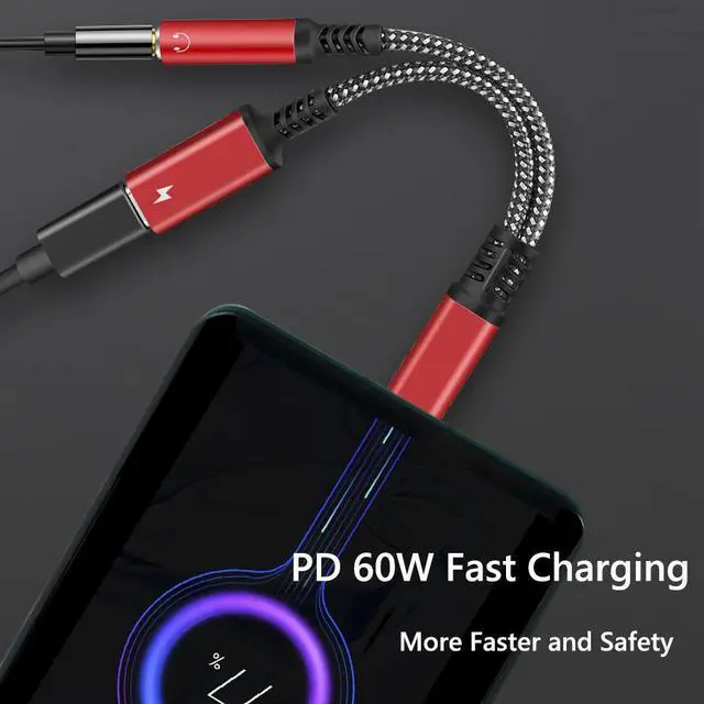2 in 1 USB C Device Adapter (Support USB C Digital Audio to 3.5mm Headphones + USB C Charging) Support up to 60W PD Charging.