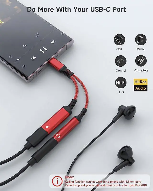 2 in 1 USB C Device Adapter (Support USB C Digital Audio to 3.5mm Headphones + USB C Charging).