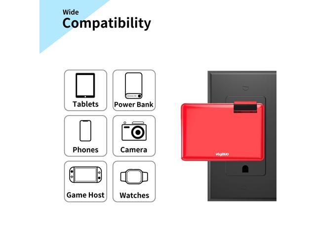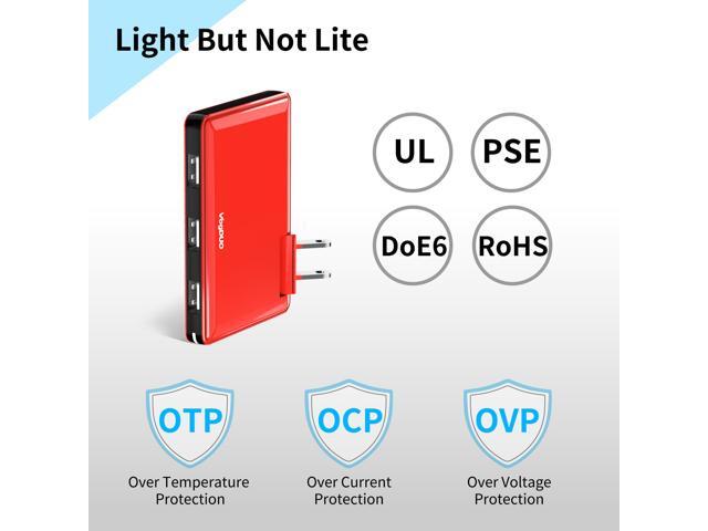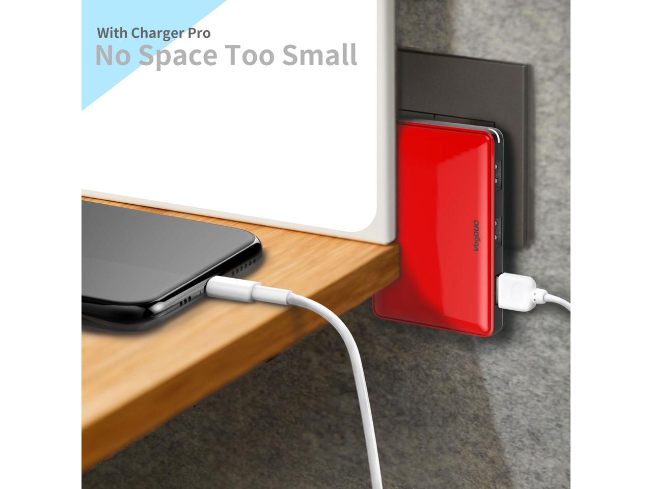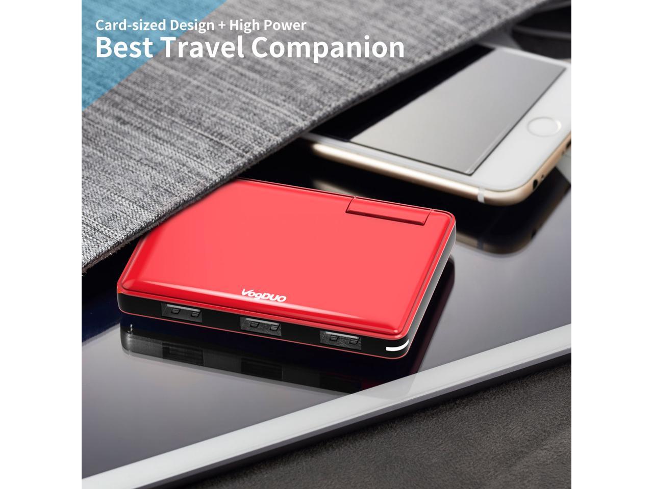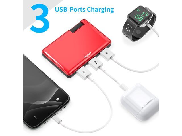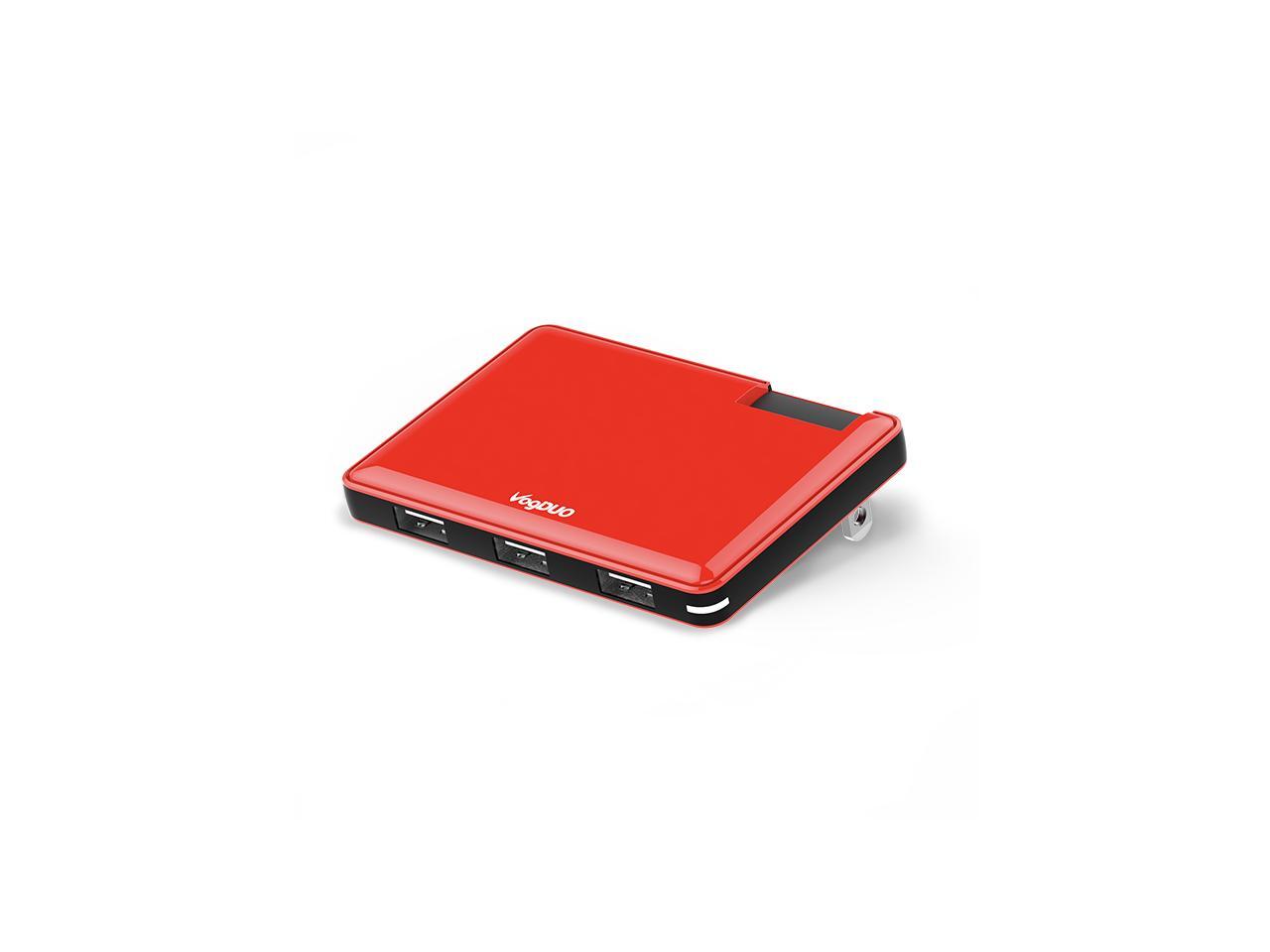 VogDUO Charger Pro, Ultra-Thin, 3 Port USB Travel Wall Charger, 30W 5V/6A, Foldable Plug, Portable Charger, Compatible with iPhone, Webcam, Samsung, Google Pixels, Kindle, Fitbit, Red