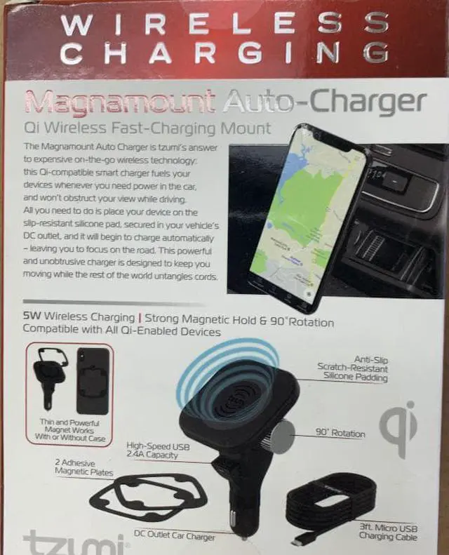 TzumiWireless Charging QI Magnamount Auto-Charger with USB Port