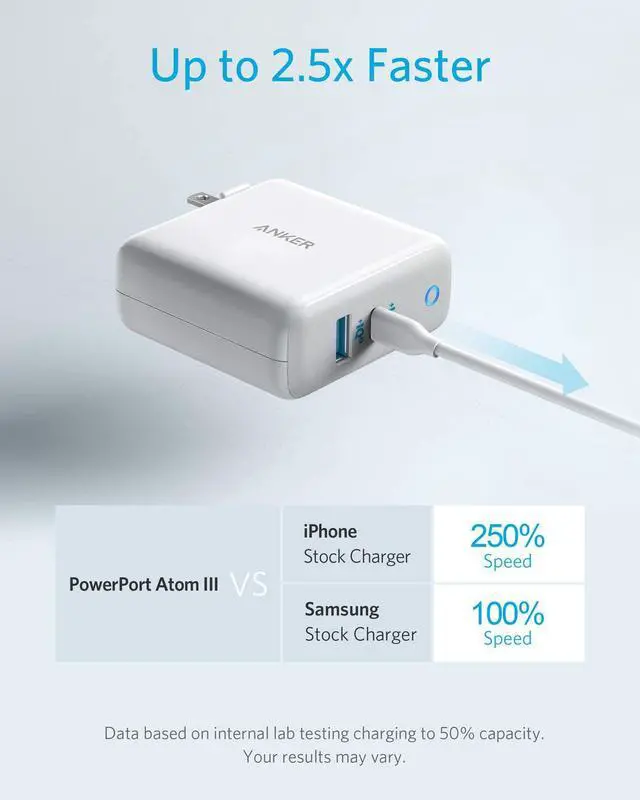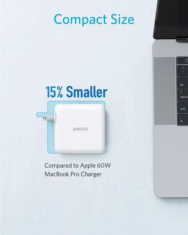 Universal High Speed - From iPhone to Samsung to USB-C laptops and more Ankeru2019s signature PowerIQ 3.0 technology provides high-speed charging to virtually any mobile device. One for All - Compatible with virtually any device that can be charged via USB; with a USB-C PowerIQ 3.0 port and a USB-A port equipped with PowerIQ 2.0. Compact Size - 15% smaller than an out-of-the-box MacBook charger with all of the poweru2014and double the ports. Powered by GaN - Swapping out silicon for gallium nitride (GaN) has allowed us to take our world-famous charging technology and shrink it way down.