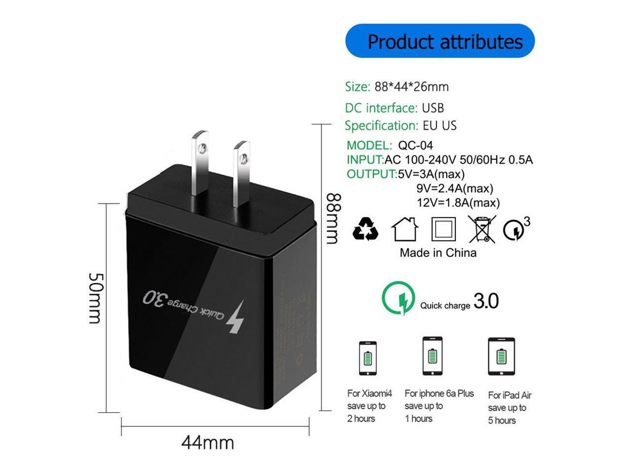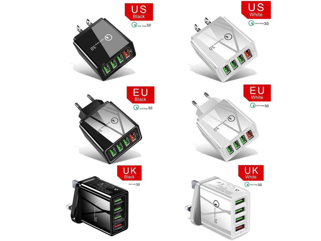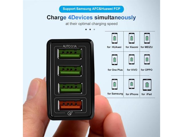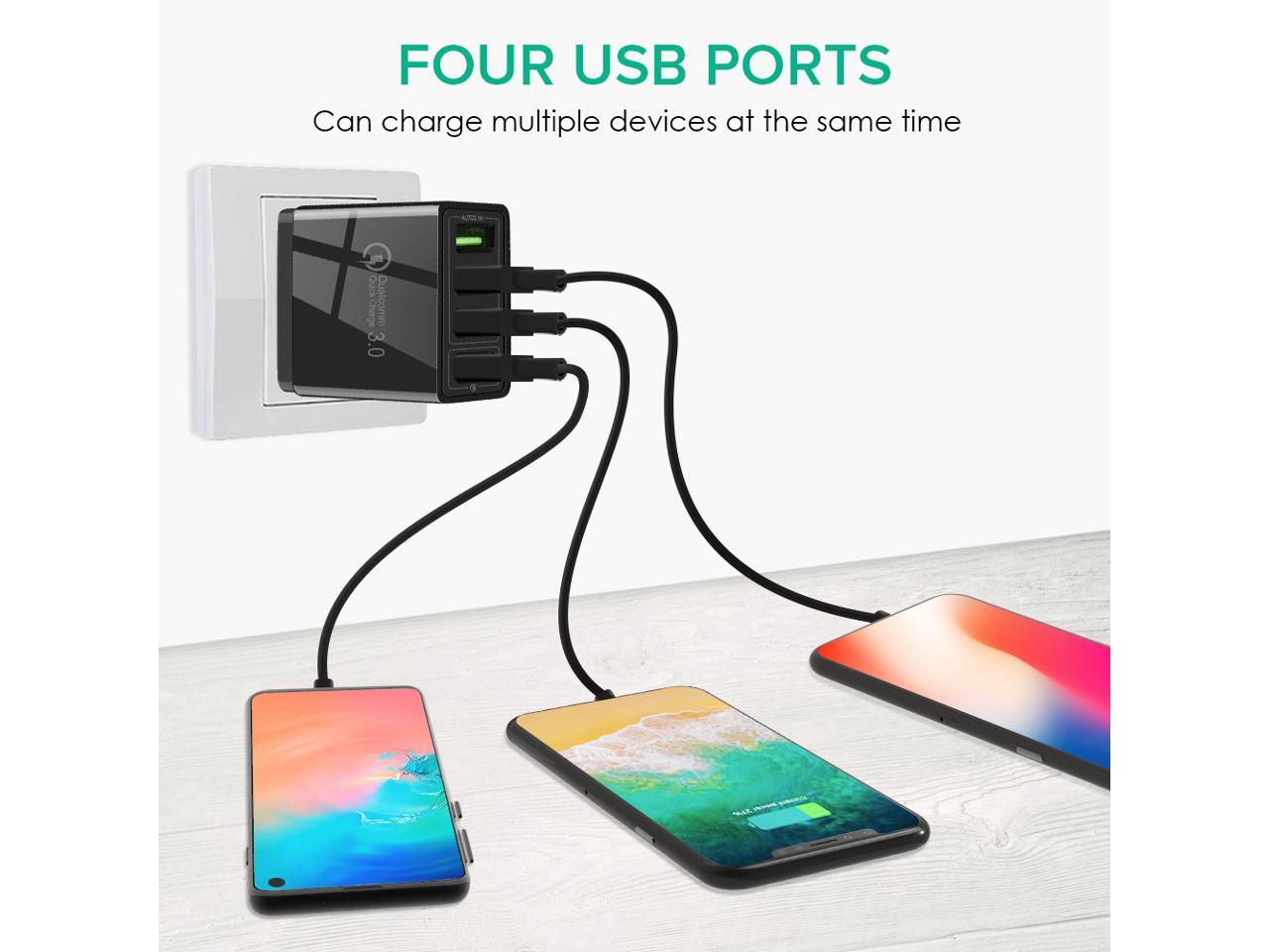 - 48W Quick Charger 3.0 4-Port USB Charger for Samsung iPhone X, Xs, XS Max, XR Huawei P40 Tablet QC 3.0 Fast Wall Charger Plug Adapter