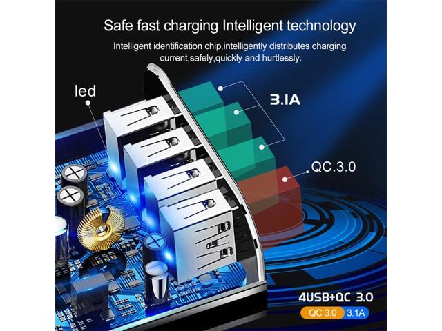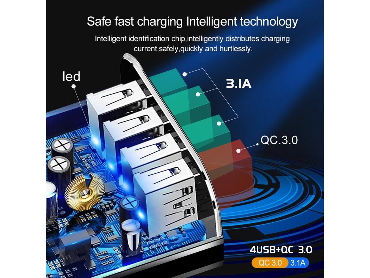 - 2. 4 USB ports ( quick charge 3.0 and 3 usb port 5V/3.1 A Max ), charging 4 devices at the same time.
