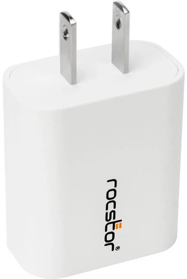 Rocstor 20W Smart USB-C Power Adapter offers charging compatibility with numerous USB-C devices such Apple® iPhone® 8, 10, 11, 12, 13, 14 & 15, iPad Pro®, & iPad Air®. This versatile compact smart power adapter can also charge any USB-C enabled device up to 20W power requirement. Rocstors 20W Smart power adapter automatically adjusts to your device power requirement up to 20W. So if your device requires 15W or lower power, this adapter will safely and automatically adjust to the required power requirement. The Rocstor Premium 20W PD3.0 travel and compact charger is rugged, light and it is able to charge tablets, cellular phones, earphones and everything else with a USB power input. The slim and compact design charger measures only 1.56" H x 1.79" D x 0.90" W (39.8 x 45.6 x 23 mm). The durable Rocstor 20W holds UL, FCC/CE certifications for the máximum safety protocols. Backed by Rocstors 1-year warranty and lifetime technical phone support.