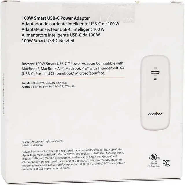 Rocstor 100W Smart USB-C Power Adapter For Apple Laptops Y10A247W1