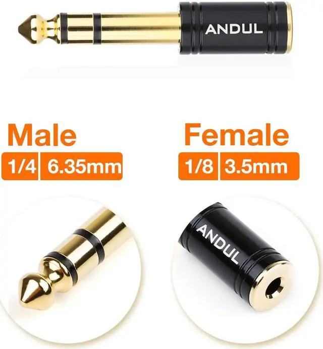ANDTOBO TRS 3.5mm female to 6.3mm male 1/4" to 1/8" audio adapter allows you to connect your headphones or microphones with 1/8 inch plugs to audio devices such as home audio, amplifiers, guitar and piano with 1/4 inch stereo jack.