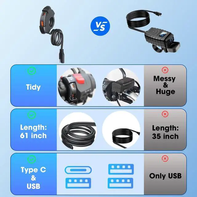Thlevel motorcycle power outlet supports 30W PD and 18W QC 3.0 high output and lets you charge any two devices simultaneously at top speed