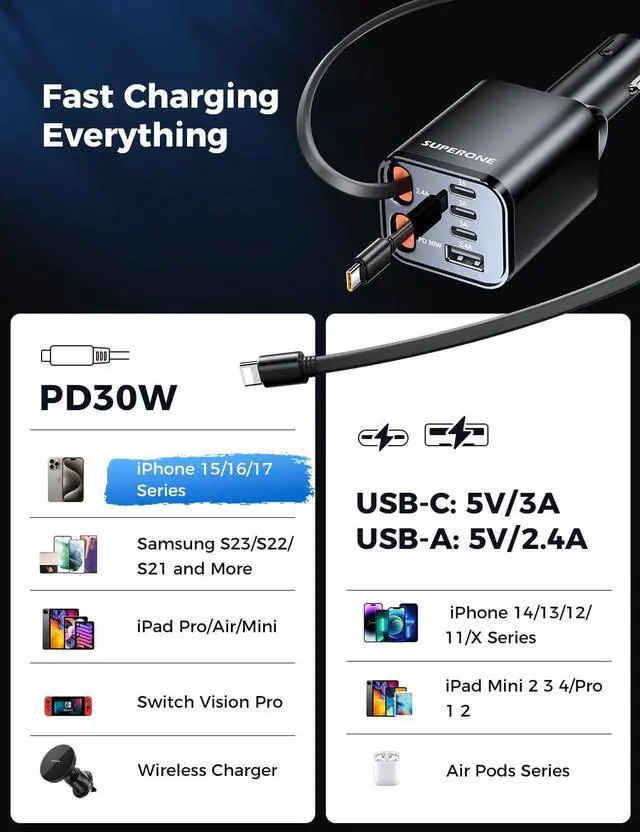![[2024 Upgraded] 4 in 1 Retractable Car Charger, SUPERONE Smaller Fast Car Phone Charger 69W with ...](http://c1.neweggimages.com/sellingpilot/modules/product/a-plus/be4f69dffd0a75c5cb2011668abf40e2ac7d09e21ba805fd8dc9f63f4d9ee5b7.jpg)