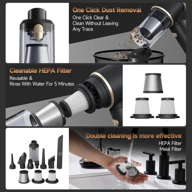 | Special Feature | Compact, Cordless, Portable, Washable Filter |