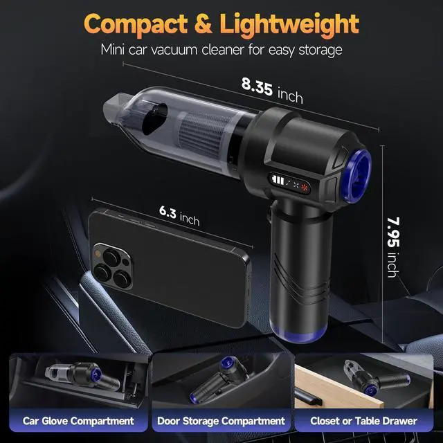 Small Car Vacuum Portable Cordless for Christmas Gift