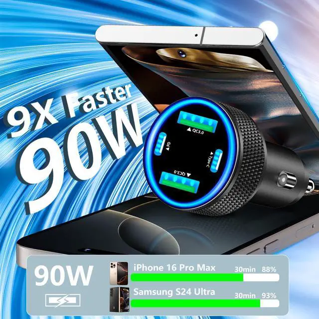 | Special Feature | 9X Fast Car Charger, Integrated Superconductor Material, Intelligent Power Distribution, Embedded in-Vehicle Smart Chip, Built-in High-Tech Chipset, 4 in 1 Car Charger, 90W Dual USB C + QC Car Power Cigarette Lighter, 90W USB-C&QC3.0 Smart Power Fast Car Charger, Intelligent Power Management Chip, 90W Super Fast Car Charging, 56 Pull Up Protection Resistor, Overvoltage Protection, Surge Protection, Battery Protector, Automatic Chip Recognition Function, Dynamic Temperature Sensor, UL/ETL/CE/FCC Certified, Compound Pressurization Technology, Overload Protection to Enhanced Safe Charging, 4-Port USB-C&QC3.0 Power Cigarette Lighter Fast Car Charger, All Titanium Zinc Alloy Fast Car Charger, Flush Fit Car Charger, Dual Soft Blue LED Light, Mini Fast Car Charger, Metal Car Charger, Fast Charger Metal Cigarette Lighter |