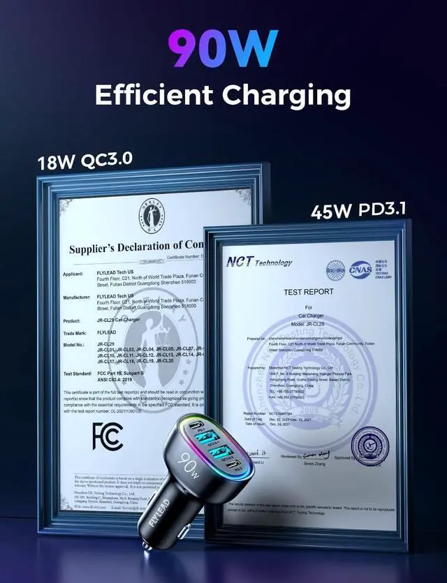 2025 Newest Upgraded 90W(Max) USB C Car Charger Fast
