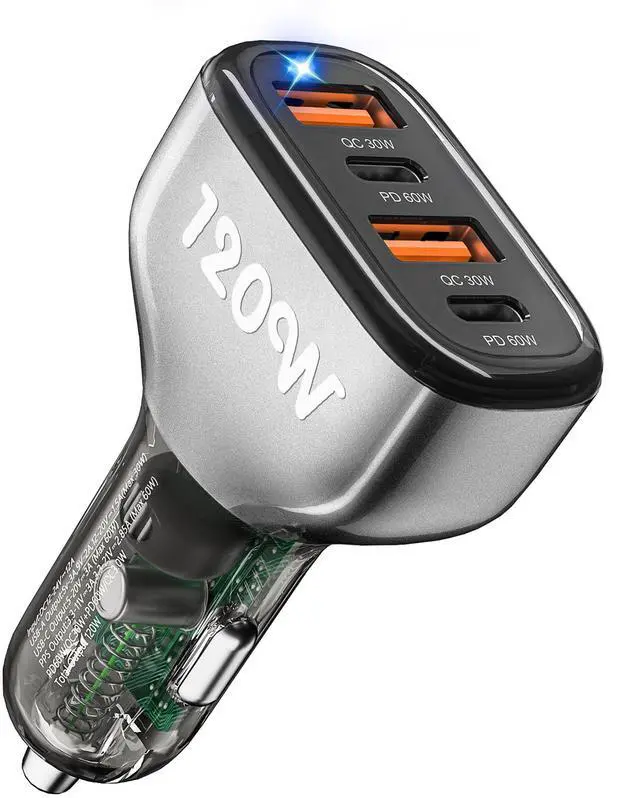 ![Alt view image 4 of 7 - 120W USB C Car Charger, 4 Ports Cigarette Lighter USB Car Charger Adapter, [2 PD 60W+2 QC3.0 30W] Fast Charging for iPhone 16 Pro Max Galaxy S23/22 Google Pixel LG iPad Air](https://c1.neweggimages.com/productimage/nb640/C3H4D25121707WPJ825.jpg)