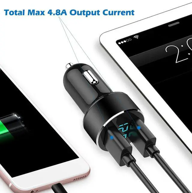 The extra intelligent circuit design can quickly cool down to prevent the car charger and your devices from over-temperature, overcurrent, overvoltage, and overload.