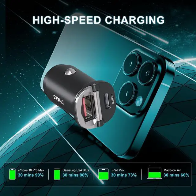 ![Alt view image 7 of 7 - 125W [PD65W+QC60W] Car Charger USB C/A 2-Port Fast Charge, Car Phone Charger Cigarette Lighter Adapter for iPhone 16/15/14/13/12, Samsung S25/S24/S23/S22, iPad/Lenovo/MacBook/Android Devices](https://c1.neweggimages.com/productimage/nb640/C3H4D251217080RRZ69.jpg)