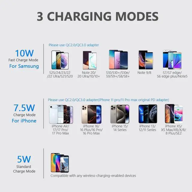 | For iPhone 15 14 13 SE 2022 12 11 X 8 | 7.5W | 7.5W | 7.5W | 7.5W | 7.5W |