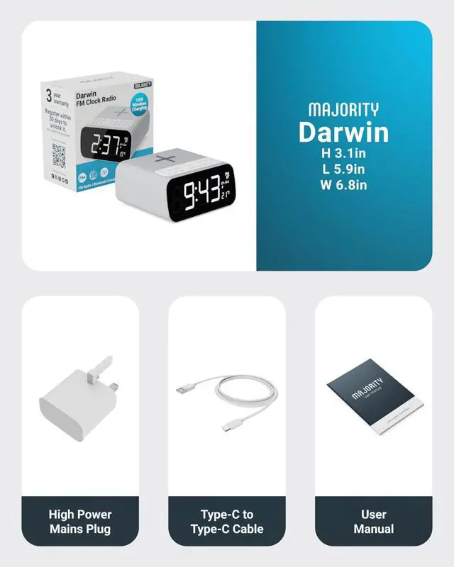Wake up in style with the Majority Darwin Bedside FM Radio