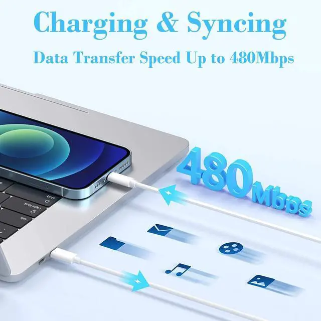 With this USB-C to Lightning Cable, you could transfer data from your iPhone/iPad directly, The speed of data transfer is up to 480 Mbps.
