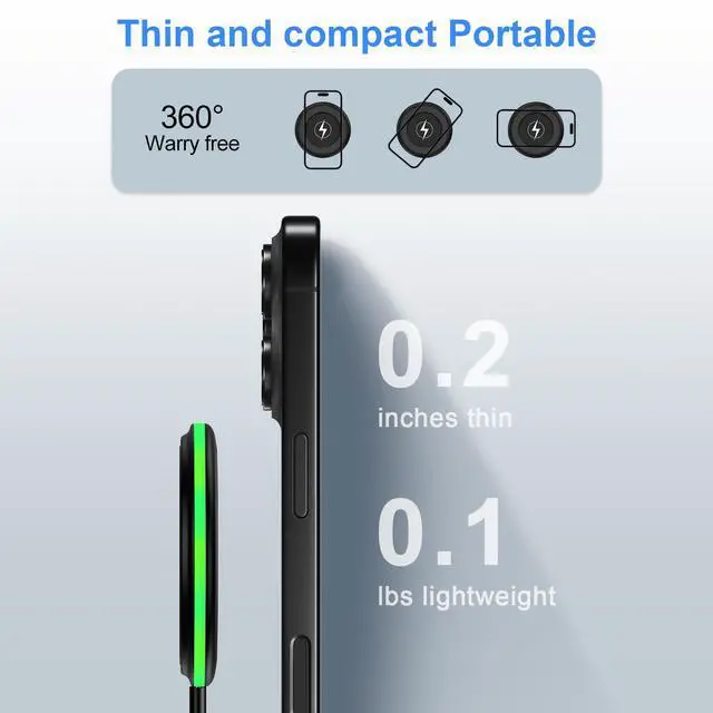 The android wireless charger is only 0.11lb/0.26inch Ultra-thin. It's very light, and you can pack it and go everywhere.