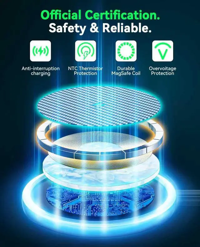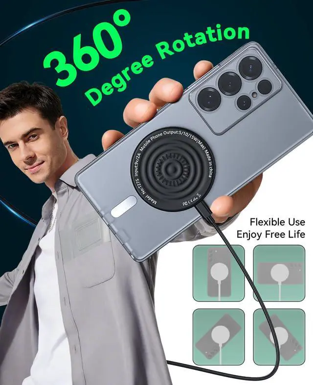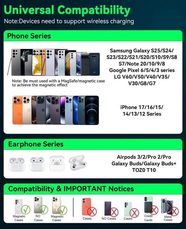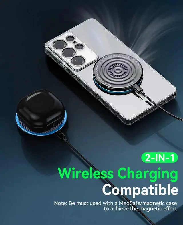Strong Magnetic AlignmentSecure & Stable Charging: Built-in powerful N56 magnets charger, The Samsung Wireless charging pad strong magnetic suction ability allows your device to be easily aligned with the charging area and holds your Phone firmly in place (no slipping even when shaken). Note: Be must used with a MagSafe/magnetic case to achieve the magnetic effect For stronger attachment, we recommend using a MagSafe-compatible case