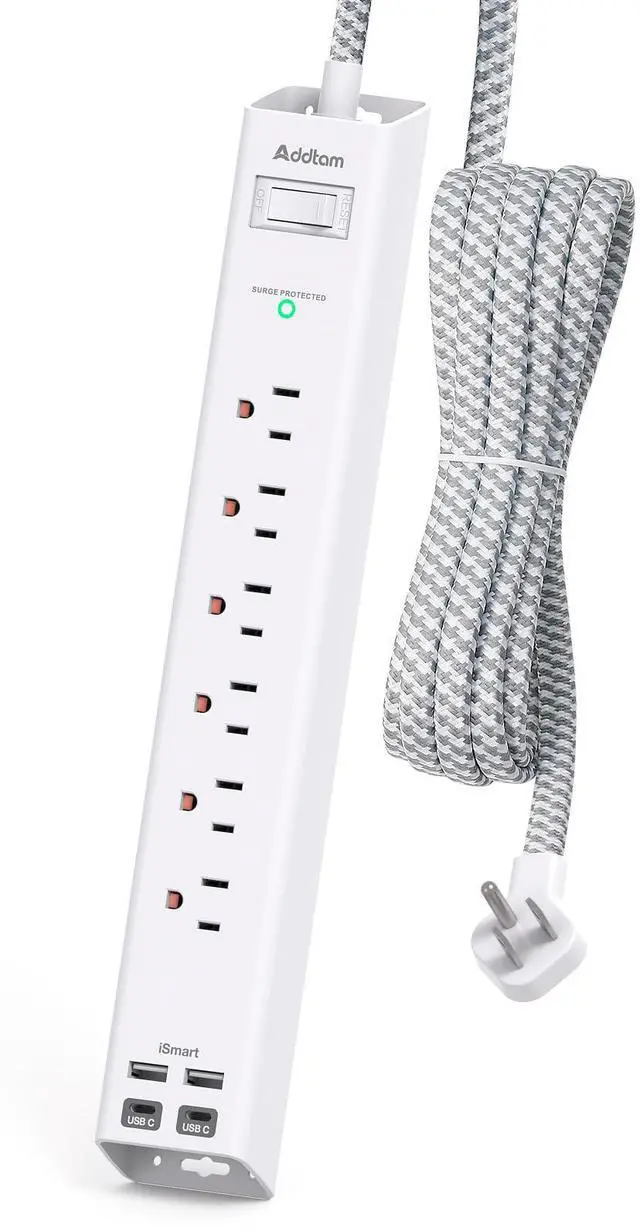 10-IN-1 Extension Cord with Multiple Outlets- The slim power strip with 6 AC surge protector outlets (15A/1875W) and 4 usb ports (3.1A/15V), provide ample space for multiple devices and adapters to be plugged in simultaneously. It can charge your cellphone, laptop, tablet, cameras without a variety of converters, save your space and make your desktop organized. Suitable for the home, office, and college dorm room essentials.