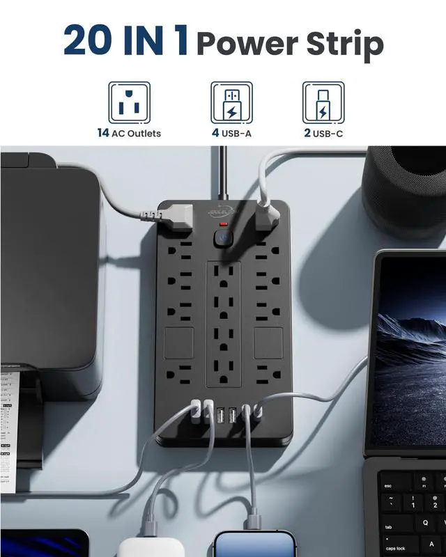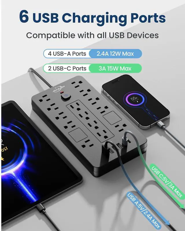 - With convenient switch control for power strip, you can easily turn devices on or off as needed, helping to save energy and prevent unnecessary power consumption.
