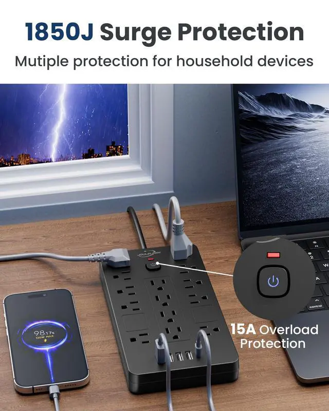 - Automatically disconnects power during overload conditions to protect your devices.