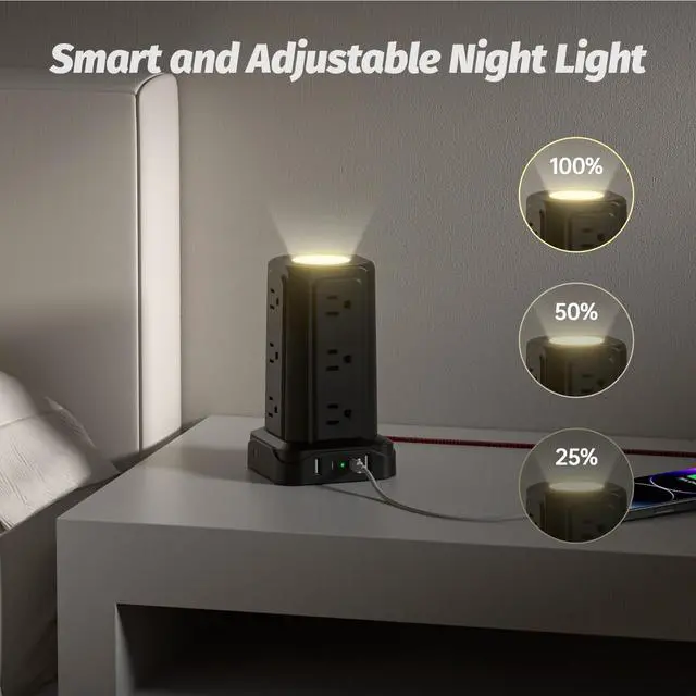 PASSUS multi-plug tower with a white light mode that features three brightness levels to let you choose the right amount of light for your own needs
