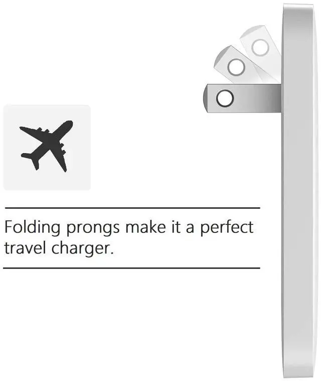 With the prongs folded, the charger easily fits inside purses or pockets making it the perfect travel companion.