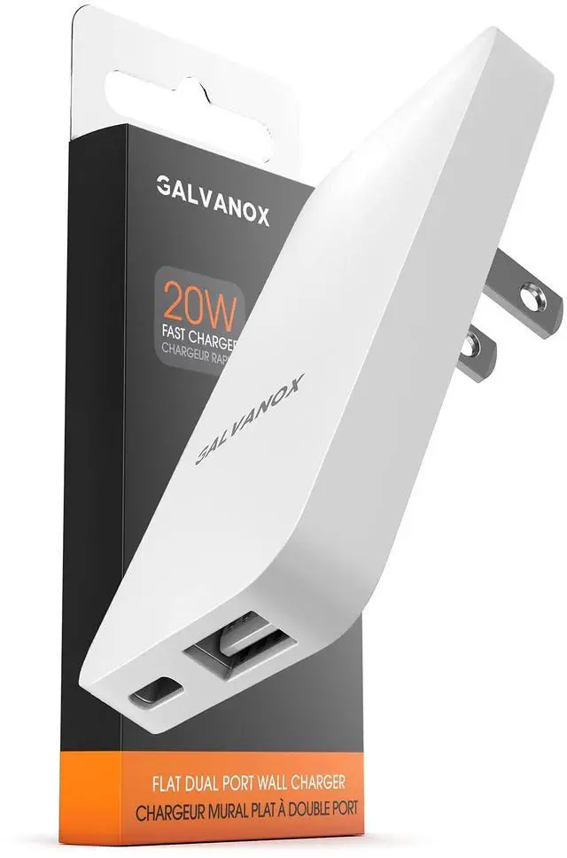 Type C Flat Wall Charger, Galvanox Ultra Slim (Multi-Port Power Adapter) for iPhone 13/14/15/16 iPhone 17 Pro/Max and Samsung Galaxy Models, 20W Fast Charging Outlet Plug (Dual USB-C USB-A)