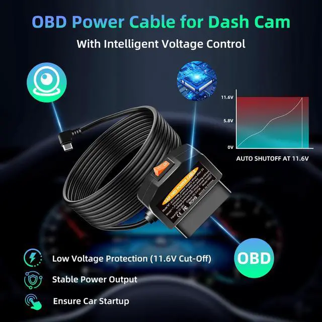 Plug & Play in 3 Minutes No Tools Needed Skip complex hardwiring. This OBD power cable for dash camera plugs directly into your vehicle's OBD-II port. The 3.5-meter cable allows for easy, clean, and hidden installation.