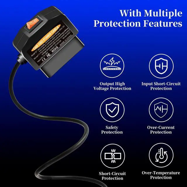 11.6V/23.4V Smart Low-Voltage Protection Built-in chip monitors battery voltage in real-time. Automatically cuts power when voltage drops below 11.6V (12V vehicles) or 23.4V (24V vehicles), preventing a dead battery.