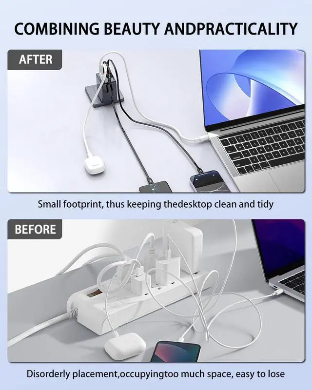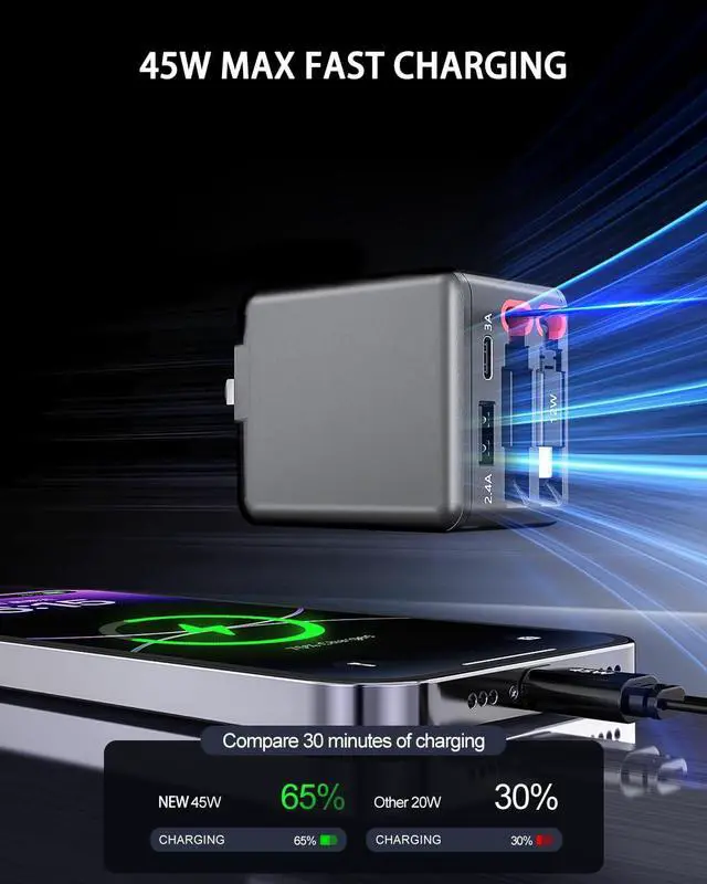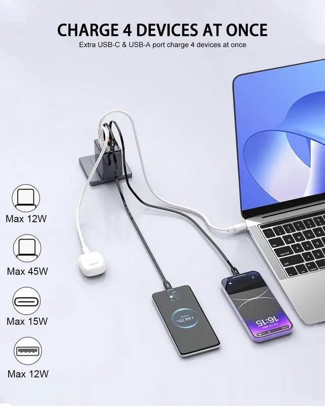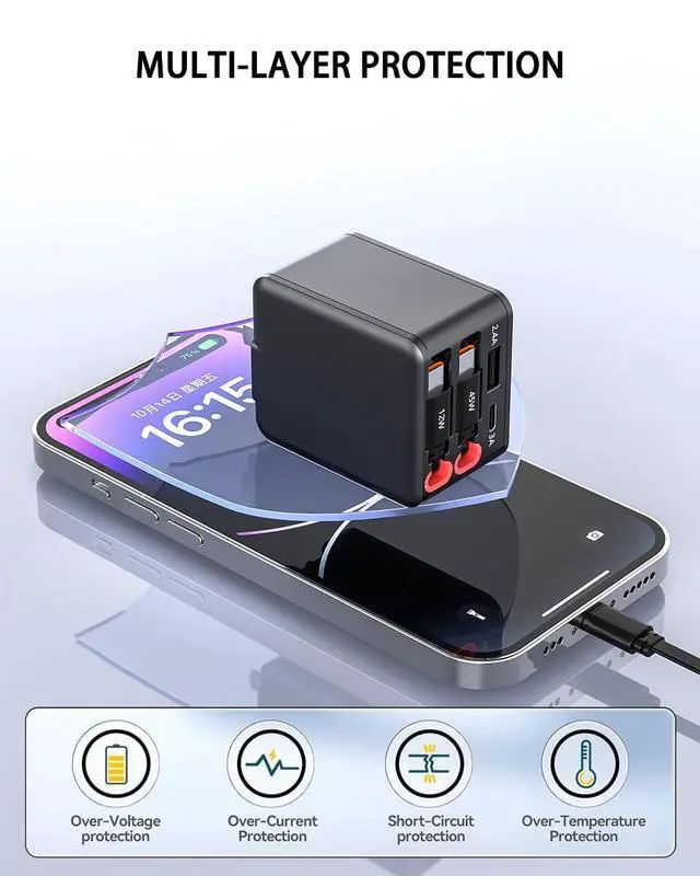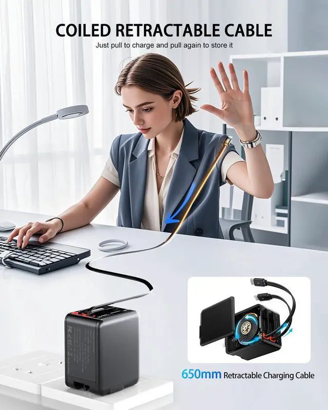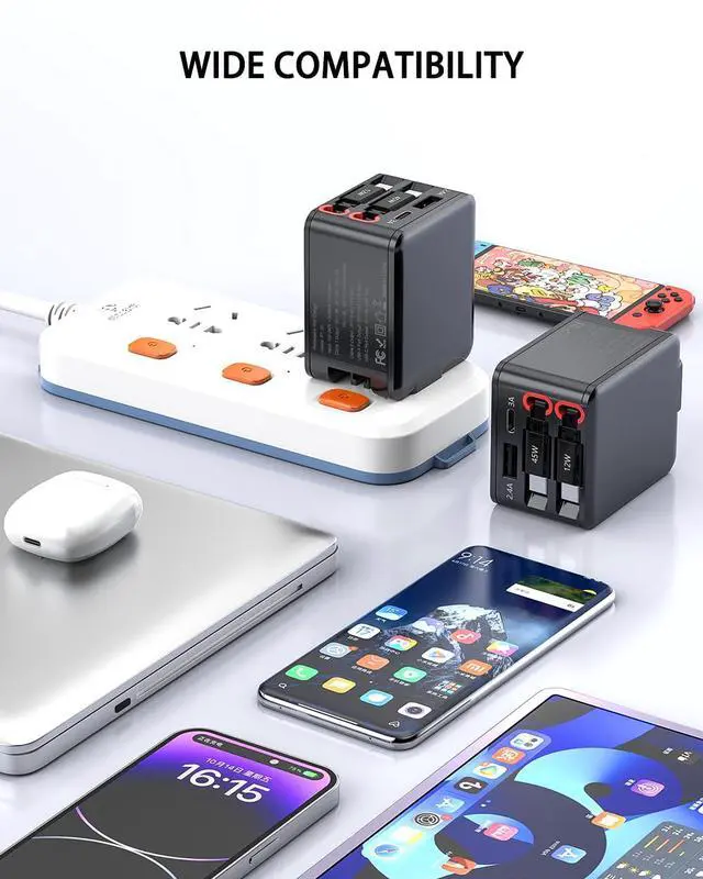 84W Retractable Wall Charger with Dual USB C Cables, 4-in-1 USB C Charger Block GaN PD 45W Fast Charging Station for iPhone 16/15, iPad, Samsung Galaxy, 4 Port Foldable Plug Adapter Block Travel