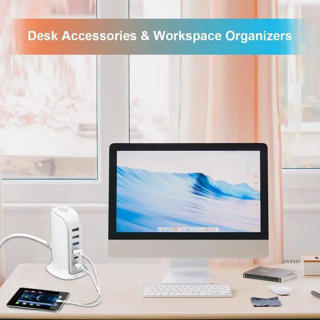 Charging station for multiple devices apple, usb power strip supports 6 devices at same time!