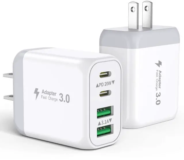 2-Pack 40W USB C Charger BlockThis USB C charger block supports PD 3.0 and QC fast charging with up to 40W total output. Each USB-C port delivers 20W fast chargingcharge your iPhone from 0% to 50% in just 30 minutes. The USB-A ports provide 3.1A/5V output for high-speed charging of compatible devices. This fast charger USB C works perfectly as your daily phone charger, delivering efficient power anytime, anywhere.