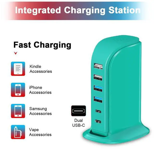 Charging station for multiple devices apple, usb power strip supports 6 devices at same time!