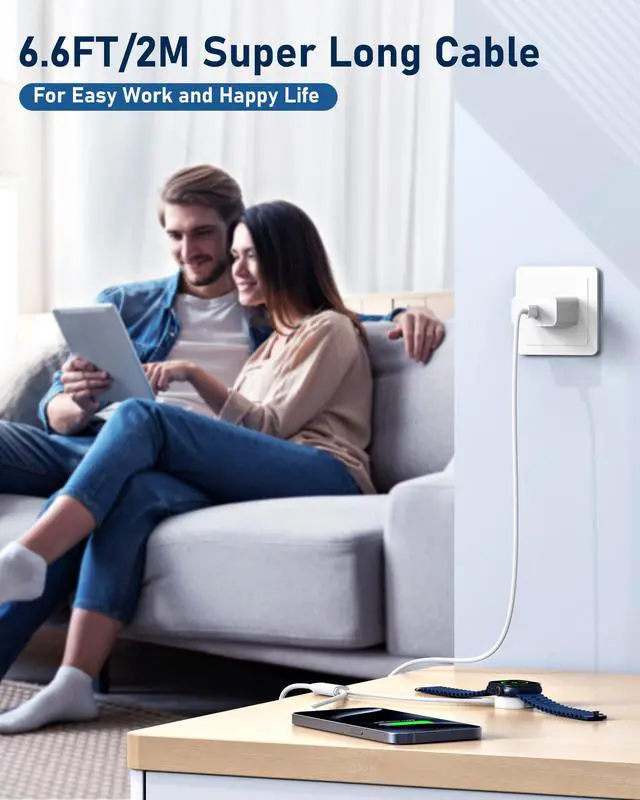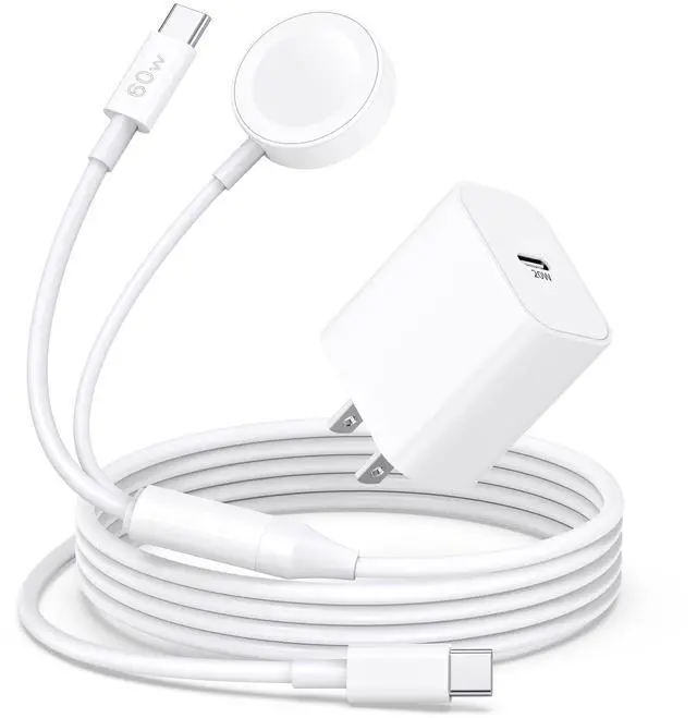 Upgraded for iWatch and iPhone 16 15 Charger 2-in-1 Newest version for iphone watch charger cord can simultaneously charge which compatible with iPhone 17 16 15 series and iWatche, Air Pods or iPad. Comes with 20W PD USB C fast charger adapter, It can fast charge your iPhone 17 16 15 Pro Max up to 65% in just 30mins or fully charge iWatch within 2 hours.