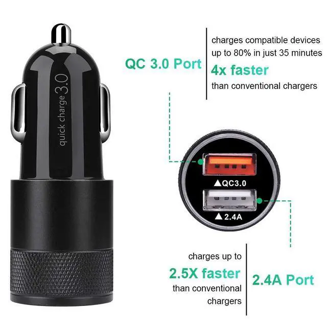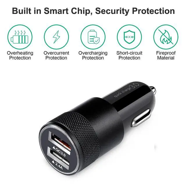 2.Dual USB Car Charger: QC 3A & 2.4A, support charging up 2 devices simultaneously with maximum charging speed.