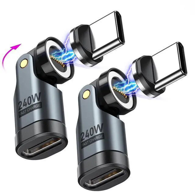 USB C Magnetic Adapter PD 240W(2Pack), 9PIN USB C 90 Degree Adapter/C Right Angle Adapters/360 &180 Degree C to C Adapters for 1Phone 17/16/15, Ma-Book Pro/1Pad Series, Samsung Galaxy, Tablet, Laptop