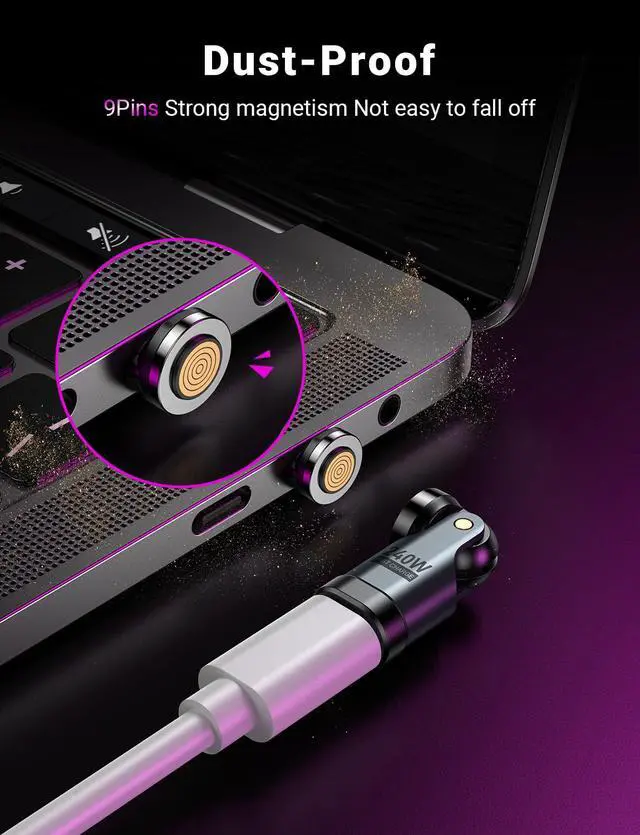 : This magnetic usb c 90 degree adapter can provide up to 240W (48V/5A) , compatible with 18W/60W/100W/240W. It can provides the power needed to adequately power for your multiple device. Note: The actual charging speed of the adapter depends on your charging cable, charger, and device. To achieve the maximum power output of 240W, your device must also be capable of 240W, and your charger and charging cable must support 240W high-power output.