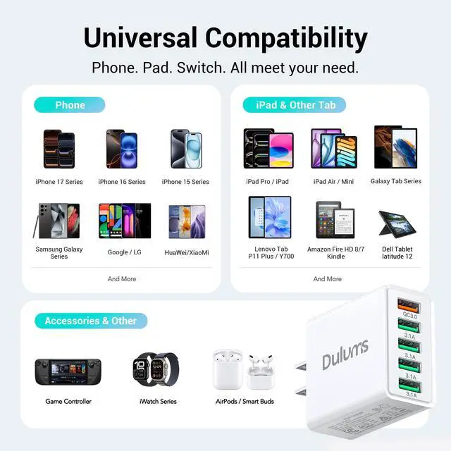 | Other Accessories | Wireless Chargers, Wireless Earbuds, Smartwatch, Switch and more USB devices. |