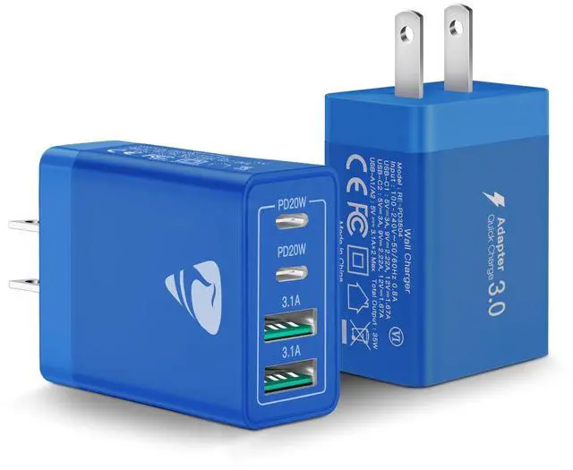 2-Pack 40W Fast Charging Block:The USB C Charger supports the Power Delivery and Quick Charge 3.0 fast charging functions with a total power of up to 40W.The USB-A port offers an output power of 3.1 A/5 V,while the USB-C port offers a charging speed of 20W.Charge your iPhone devices from 0% to 58% in just 30 minutes