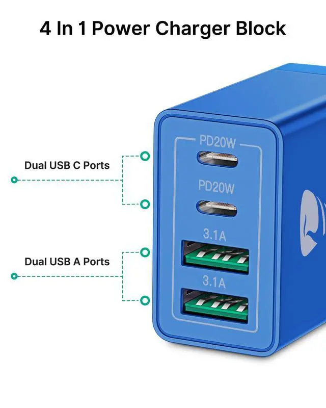 Multiport Charging Cube Brick:Upgraded USB C Charger Block charge iPhone series models up to 3X faster than original 5W Charger.And when you connect 4 devices,power will be distributed efficiently between ports to ensure you get the best charge to minimize waiting time.The best replacement for your original usb charger