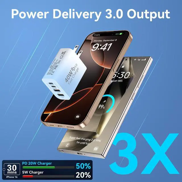 PD+QC Fast ChargingThe USB C charger blocks support PD 3.0 and QC 3.0 fast charging technology, which can meet most of devices with fast charging with a total power of up to 40W. The USB-A port offers an output power of 3.1 A/5 V, while the USB-C port offers a charging speed of 20W. Charge your i phone devices from 0% to 58% in just 30 minutes.