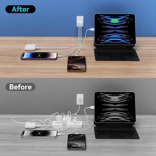 Multiple Safe ProtectionThe Multiport USB Wall Plug works with both US and international voltages and frequencies (100-240V, 50-60 Hz), it built-in safeguards protect your devices against over-current, over-voltage, and short-circuit. 4-Port wall charge block Identify different devices to dynamically allocate appropriate current, use 4 ports simultaneously without load.