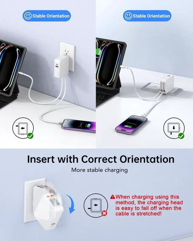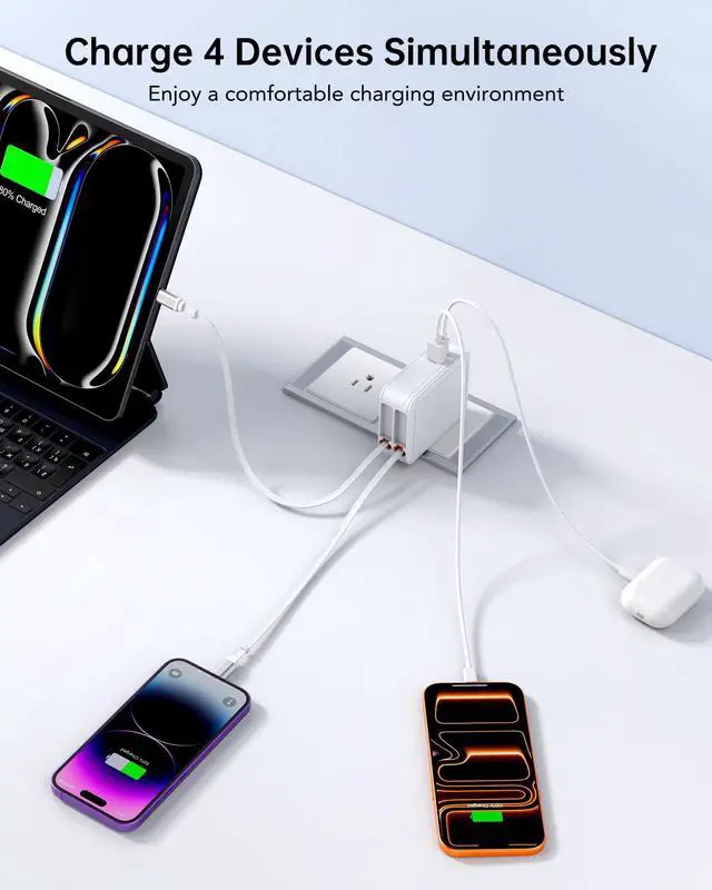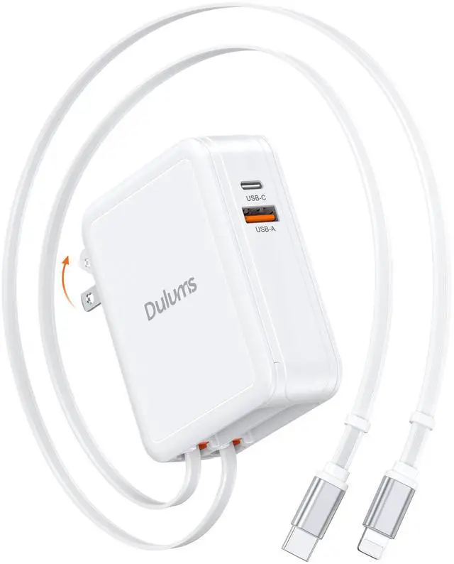 Upgraded 4-in-1 Fast Charger:The 40W retractable phone charger has a USB A/C ports,retractable fast-charging USB C cable and lightening cable, which can charge 4 devices at the same time.In just 30 minutes, this fast charger block your iPhone 25% up to 65%, making it three times faster than the 25W charger.Whether it's phones, earbuds, or smartwatches, this retractable wall charger meets all your power needs with ease.