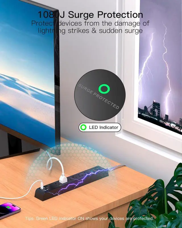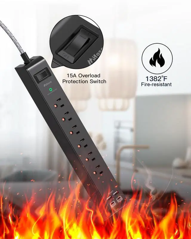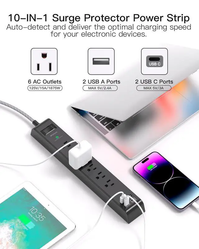 - Equipped with intelligent charging system, this power strip with surge protection can auto-detect and deliver the optimal charging speed for your electronic devices.