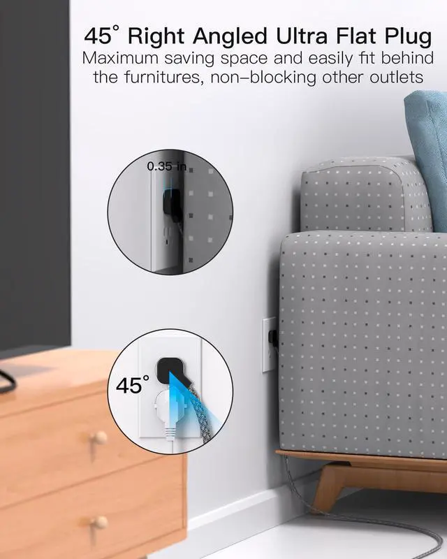 - Maximum saving space and easily fits behind the furniture, non-blocking other outlets.