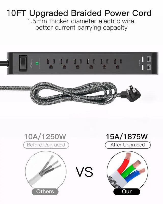 - 10 ft upgraded braided extension cord can meet most needs in your daily life, 1.5mm thicker diameter electric wire has a better current carrying capacity.
